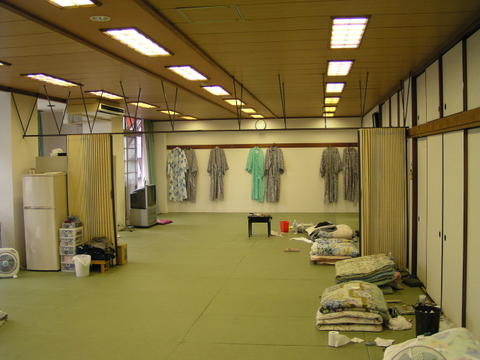 ![]() | A versenyzőtársak Attilától kérdezték, meddig maradok, mert akkor lehetne a délutáni pihenő idejére valami közös programot csinálnunk. Erre idő hiányában sajnos már tényleg nem tudtam igent mondani, így a társaság nélkülünk széledt szét. A mesternek - mielőtt elbúcsúztunk volna egymástól - odaadtam professzorom kis ajándékát, néhányan elmentek pacsinkózni (itteni népszerű szerencsejáték), Attila pedig az emeletre kísért, ahol megmutatta a hálótermet, ahol a versenyzők - mint egy határozatlan idejű edzőtáborban - együtt laknak. Hatalmas terem, tipikus - a szemnek igen megnyugtató - japán stílusban kialakítva: a padlón tatamik, szinte minden fából van, az összegöngyölhető fekvőhelyek és a tolóajtók miatt nagyon hatékony a helykihasználás, rengeteg a derékszög (még a világítótestek is téglalapok). |