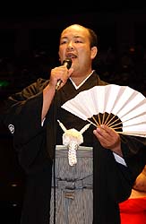 (Ti értitek, végülis miről beszéltek ezek ketten? - Bandey) Musashimaru - akkor igen vagy nem? 2003-06-20 Jelen pillanatban még elég homályos, hogy Musashimaru jokozuna végülis részt vesz-e a nagojai tornán vagy sem. Bár az utóbbi néhány napban újra aktívan edz, többek között Miyabiyamával és Buyúzannal, még mindig alig tudja használni a bal kezét. "A kondíciója? Még 50%-on sincs. Még nem döntöttünk arról, hogy induljon-e a tornán" - mondta az ojakata. "Elmegyünk Nagojába és ott majd meglátjuk" - tette hozzá szerényen Musashimaru. Daishi énekes lesz 2003-06-19