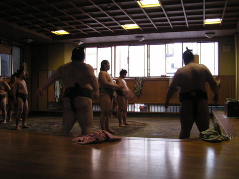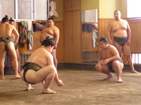 | Egy útikönyvben olvastam, hogy - szemben a szumóversenyek magas belépőjegyáraival - a versenyzőket ingyen és testközelből is meg lehet nézni: az edzések ugyanis nyilvánosak, és minden látogatót szívesen várnak, ha előtte bejelentkezik telefonon. Egyetemi kollégáimtól először megtudtam néhány alapinformációt erről a sportról (ekkor tudtam meg, hogy a mongol Asashoryu a jelenlegi egyetlen yokozuna, és egyáltalán, hogy mit jelent az hogy valaki yokozuna...), majd lelkesedésemet látva az internetről kiderítették Asashoryu klubjának (Takasago Beya) adatait, fel is hívták őket, és hamarosan, egy